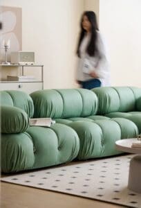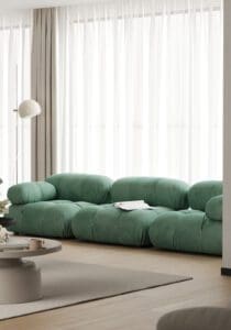 The sectional components of the Bellini couch can be positioned independently of one another and flexibly. With the help of the rings and carabiners on the backs and armrests, the user can design the ideal lounge. The sofa is quite comfy, and also it is modular means that there are many, adaptable choices available for any living space.